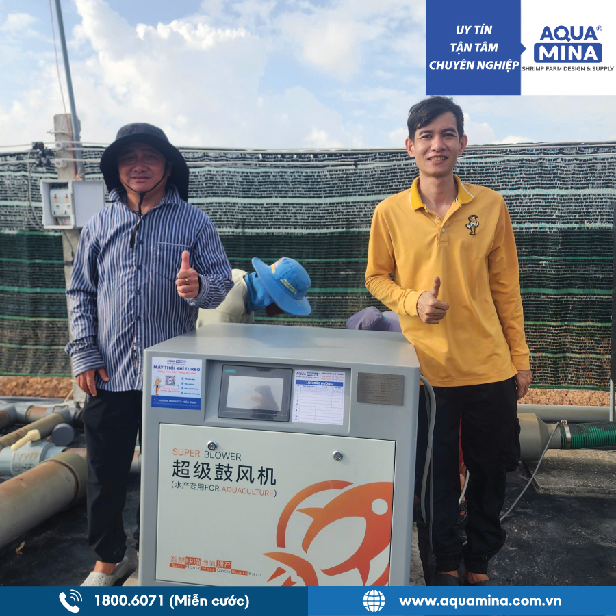 Máy thổi khí Turbo Thủy Sản Hiệu Quả Vận Hành Thực Tế Tại Farm Khách Hàng Cùng Aqua Mina