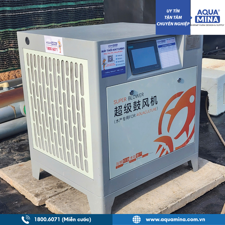 Trong nuôi tôm công nghệ cao, việc cung cấp đủ oxy hòa tan cho ao tôm giúp tôm tăng trưởng tốt, hấp thụ thức ăn hiệu quả, tăng cường sức đề kháng và giảm thiểu bệnh tật.. Nhiều hộ nuôi tôm trước đây sử dụng máy thổi khí truyền thống (máy thổi khí suplan) nhưng loại máy này tiêu hao điện năng lớn, độ ồn cao và không điều chỉnh được công suất trong quá trình vận hành. Để giải quyết vấn đề, hãng iAqua đã phát triển dòng Máy thổi khí turbo 15kW 25Kpa 3 pha, hiện được Aqua Mina phân phối độc quyền tại thị trường Việt Nam. Đây chính là giải pháp thay thế hoàn hảo cho máy thổi khí truyền thống giúp tiết kiệm điện, vận hành ổn định và nâng cao hiệu quả nuôi trồng.