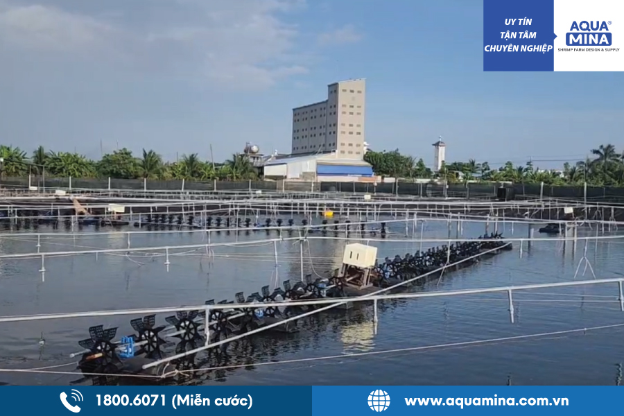 - Trong dự án này, Aqua Mina lựa chọn máy thổi khí Turbo công suất 15kW, sử dụng nguồn điện 3 pha, áp lực làm việc 25 kPa, kết hợp hệ thống vòng bi gốm để cấp khí đều khắp ao nuôi.