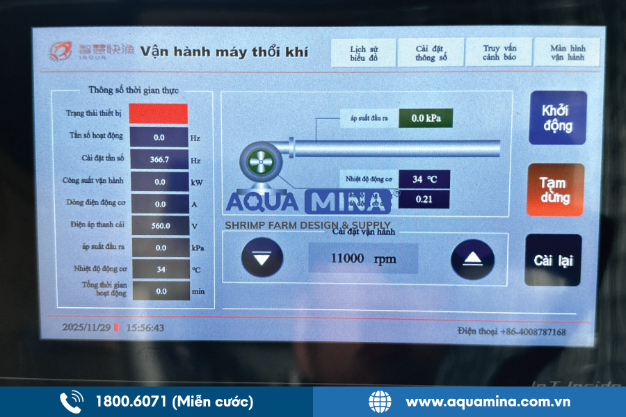 Aqua Mina lắp đặt máy thổi khí turbo vòng bi gốm tại Bạc Liêu | Giao diện tiếng Việt, dễ vận hành cho khách hàng