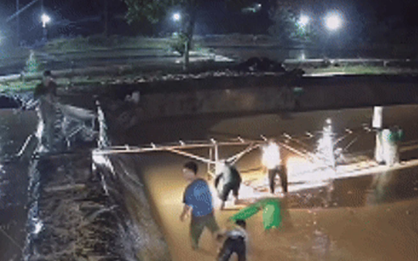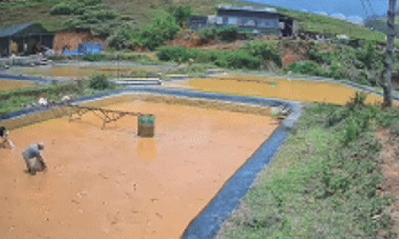 Sự việc xảy ra trưa 13/4, thời điểm anh Khánh không có mặt tại trang trại. Nhờ thói quen theo dõi hệ thống camera từ xa, anh phát hiện mưa lớn khiến mực nước trong hồ dâng cao bất thường.