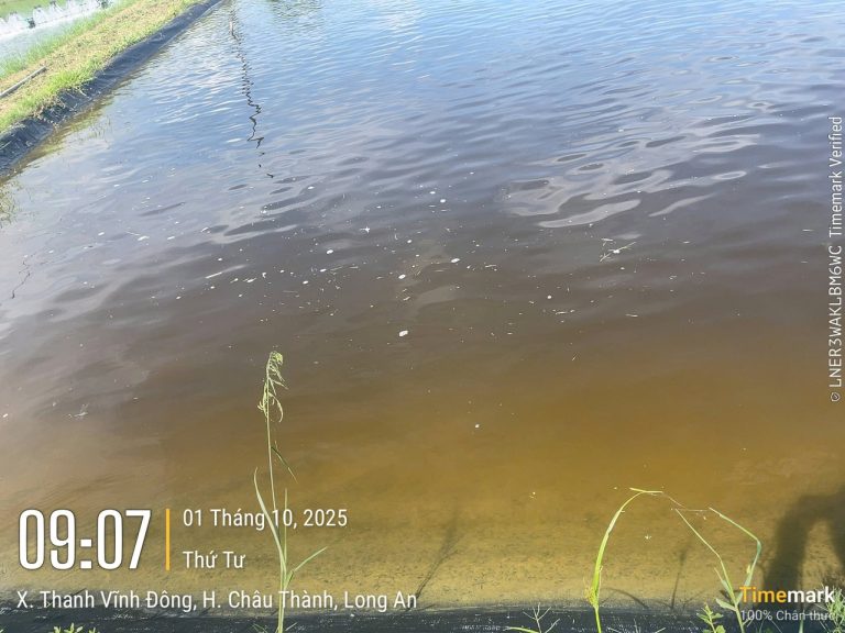 Ví dụ, tại ao nuôi anh Đấu (Châu Thành, Long An), sử dụng giải pháp màu trà T-VARDO với liều 1 kg/1.500 m³ nước trước khi thả tôm đã giúp nước lên màu trà đẹp, độ trong phù hợp và giữ màu ổn định hơn 10 ngày.