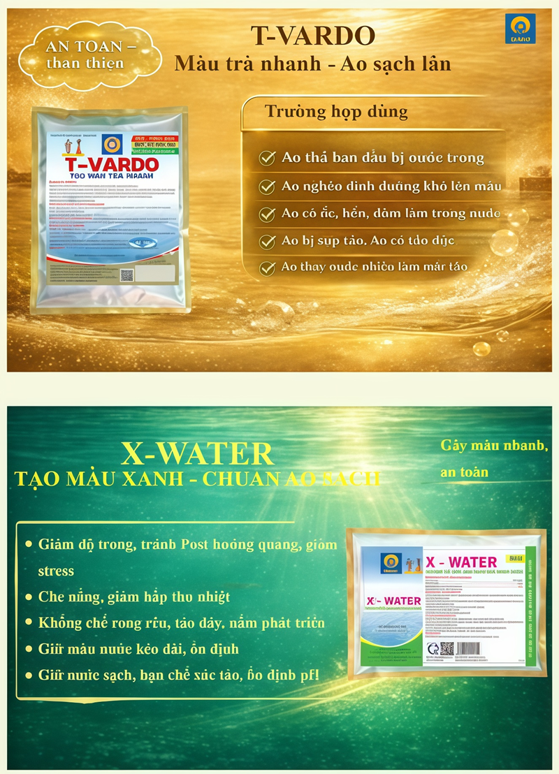 - T-VARDO gần với màu ao tảo khuê chiếm ưu thế, giúp nước sạch, ổn định môi trường.