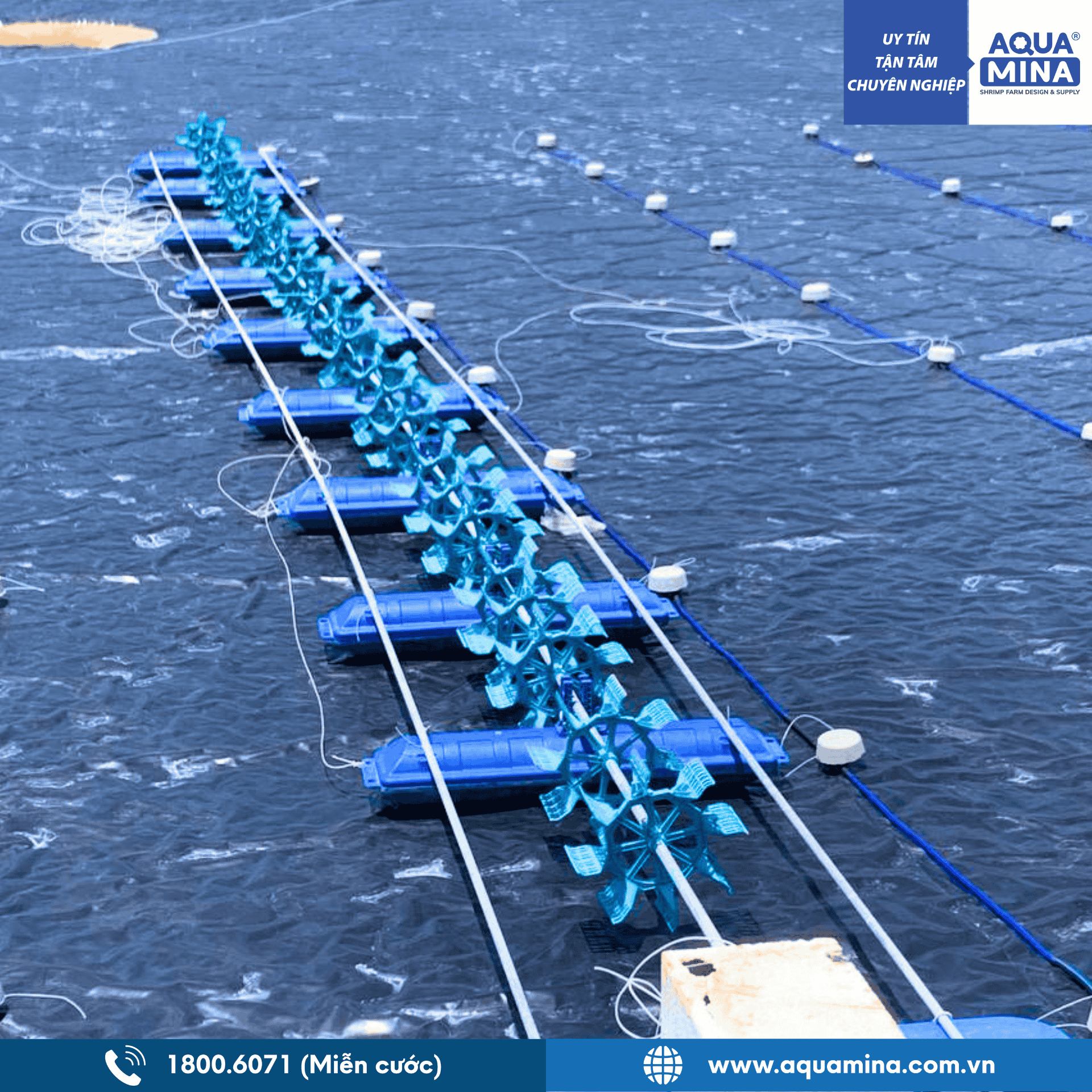 Một hệ thống dàn quạt nước hoạt động liên tục trên bệ đỡ phao tròn chắc chắn sẽ giúp giải thoát khí độc và ngăn chặn tình trạng phân tầng nước một cách hiệu quả. Aqua Mina cung cấp nguyên bộ đầy đủ phao tròn nguyên khối giúp bà con dễ dàng lắp đặt, đảm bảo lượng Oxy hòa tan luôn dồi dào cho tôm phát triển. Việc lựa chọn sản phẩm từ một đơn vị có bề dày lịch sử hơn 10 năm sẽ giúp anh chị tránh được rủi ro từ các loại phao trôi nổi kém chất lượng, từ đó bảo vệ sức khỏe đàn tôm và nâng cao năng suất thu hoạch.