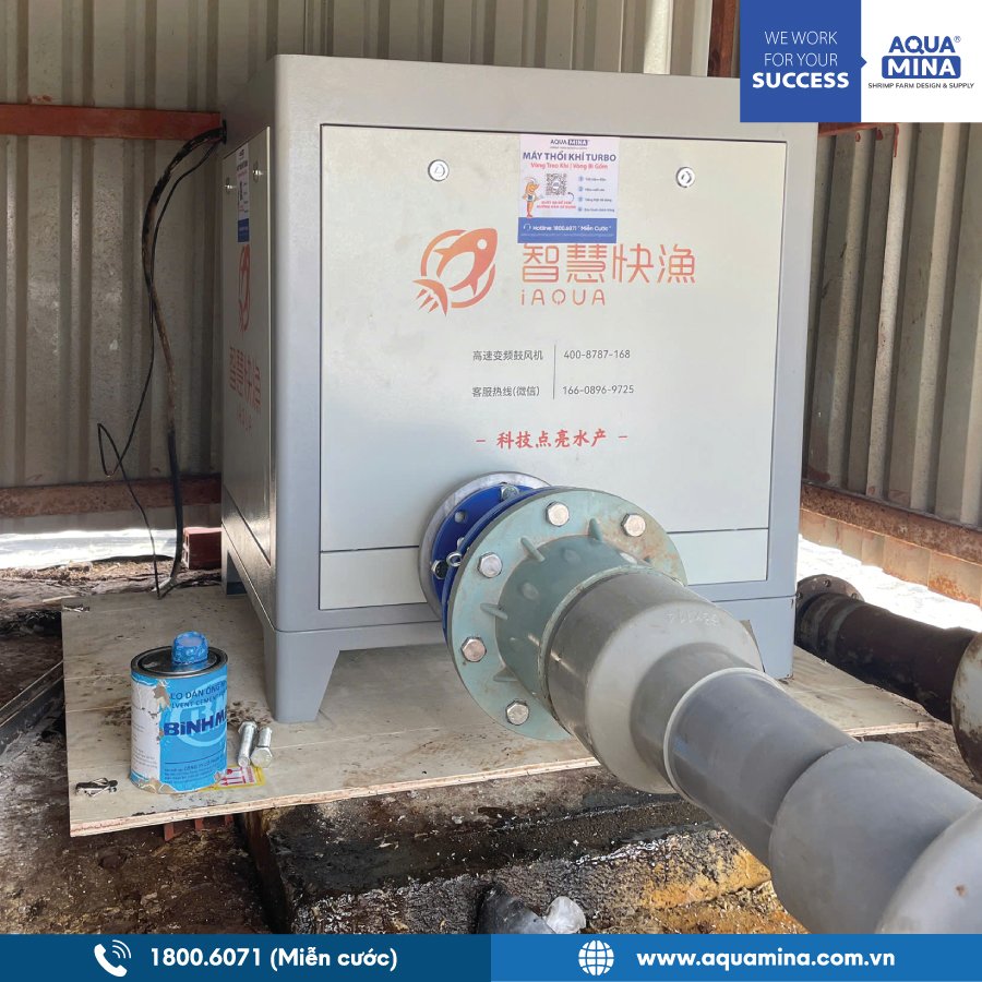 Hình ảnh thực tế sản phẩm Máy thổi khí turbo Aqua Mina | Vòng Bi Gốm tại farm khách hàng