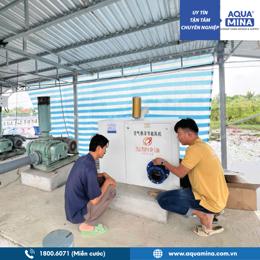 Không chỉ tiết kiệm điện, máy còn cấp oxy ổn định và đều đặn, giúp tôm hấp thụ dinh dưỡng tốt hơn, tăng trưởng nhanh, khỏe mạnh và giảm nguy cơ bệnh tật. Thiết kế thông minh (với bảng điều khiển Tiếng Việt) dễ sử dụng cho phép bất kỳ ai cũng có thể vận hành mà không cần chuyên môn kỹ thuật cao. Bên cạnh đó, chính sách bảo hành 1 đổi 1 và dịch vụ hậu mãi tận tâm từ Aqua Mina giúp người nuôi an tâm đầu tư lâu dài, không lo gián đoạn quá trình sản xuất.