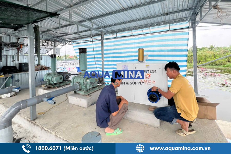 “Trước đây ao nuôi của tôi phải chạy 3 máy thổi khí Longtech LT-080 7,5kW mới đủ oxy. Sau khi chuyển sang 1 máy thổi khí turbo Aqua Mina, tiền điện giảm hẳn, máy chạy êm, mà tôm phát triển tốt hơn.”