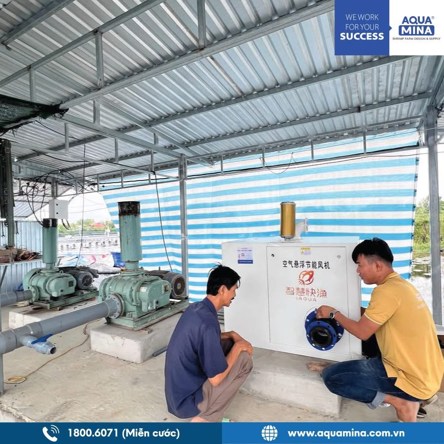 - Việc sử dụng máy thổi khí turbo Aqua Mina là bước nâng cấp toàn diện so với máy truyền thống. Chỉ với một máy thổi khí turbo 5,5kW, người nuôi đã có thể đạt hiệu quả tương đương hoặc cao hơn máy truyền thống 22kW đồng thời giảm tới 50% điện năng tiêu thụ. Nhờ đó, chi phí vận hành mỗi vụ giảm đáng kể – nhiều hộ nuôi tiết kiệm được hàng chục triệu đồng tiền điện chỉ sau một mùa.