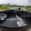Mặt bích kép 63mm được lắp đặt để xử lý sự cố khi bị phồng bạt dưới đáy ao do khí độc và nước ở dưới bạt trào lên làm phồng và nhăn bạt phủ.