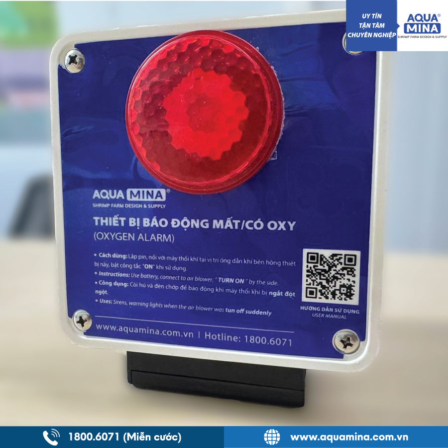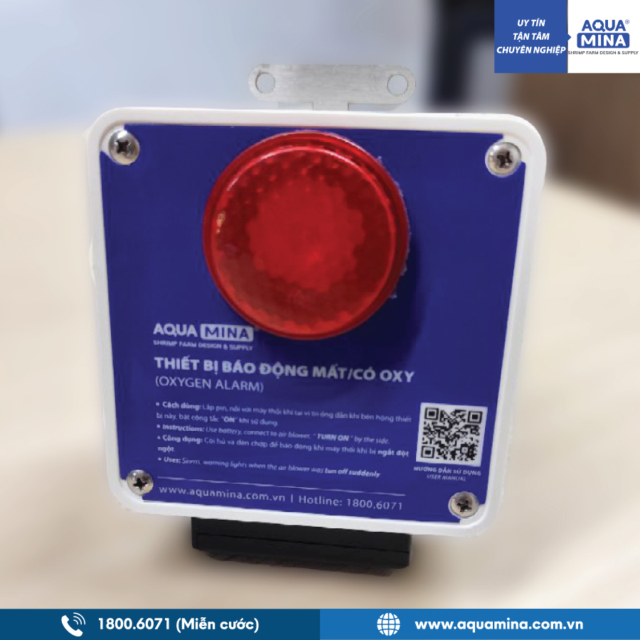- Giúp xác định được thiết bị thổi khí đang hoạt động có thổi đủ lượng Oxy đều đặn vào trong ao nuôi hay không. Còi hú to kèm theo đèn chớp để dễ dàng xác định vị trí báo động trong ban đêm.