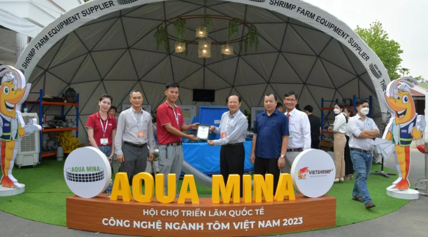 VietShrimp 2023 là Hội chợ Triển lãm Quốc tế Công nghệ ngành tôm Việt Nam lần thứ 4, khai mạc ngày 12 tháng 4 năm 2023 tại Cần Thơ với chủ đề Nâng tầm chuỗi giá trị . Sự kiện do Bộ NN&PTNT và Hội Nghề cá Việt Nam phối hợp tổ chức, quy tụ 200 gian hàng của 150 doanh nghiệp trong nước và quốc tế, cung cấp kiến thức, kinh nghiệm và cơ hội hợp tác trong ngành nuôi tômViệc tham gia triển lãm giúp Aqua Mina không chỉ giới thiệu sản phẩm công nghệ cao, mà còn kết nối trực tiếp với khách hàng, đối tác trong nước và quốc tế, lắng nghe nhu cầu thực tế của bà con nuôi tôm để từ đó phát triển giải pháp phù hợp hơn.